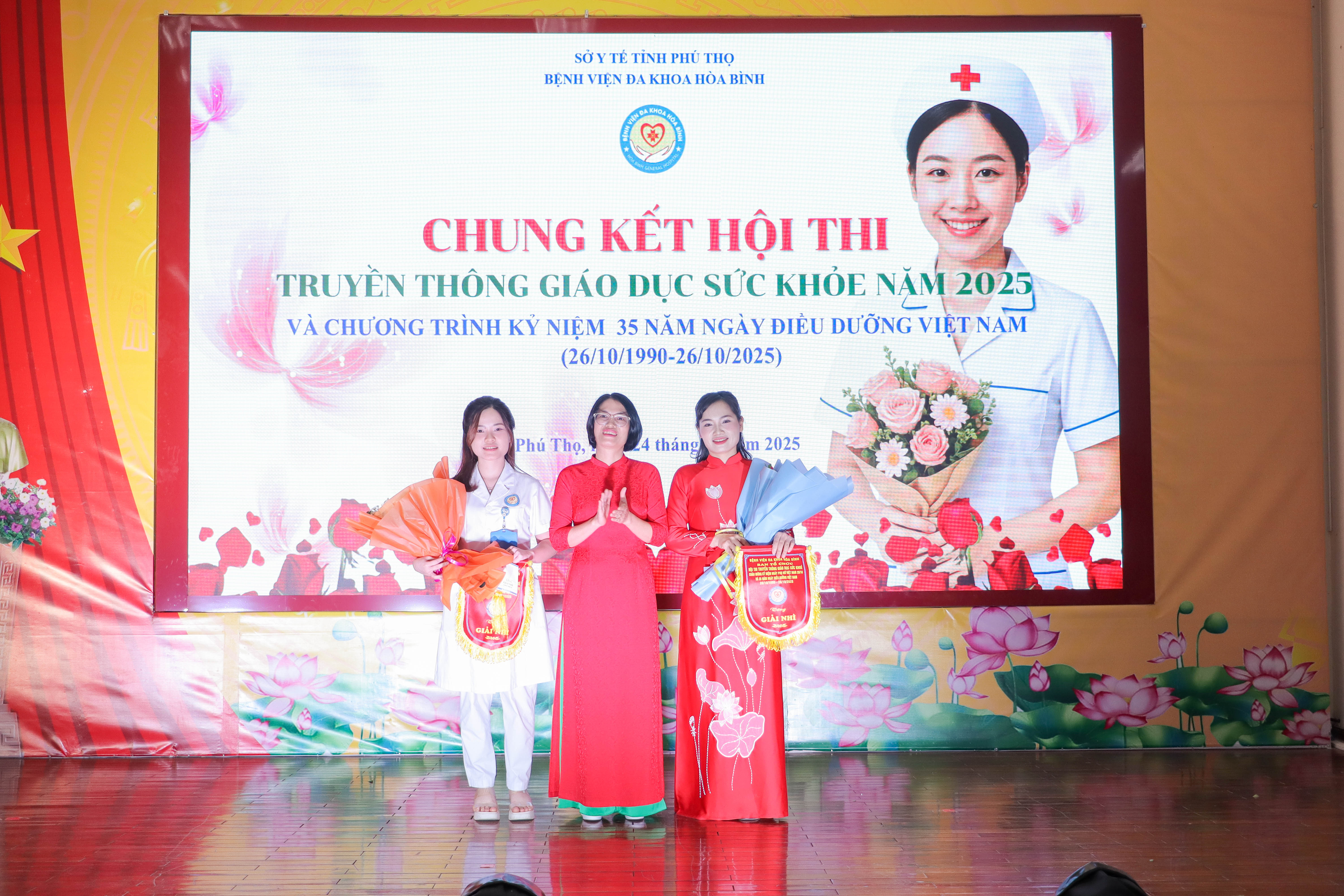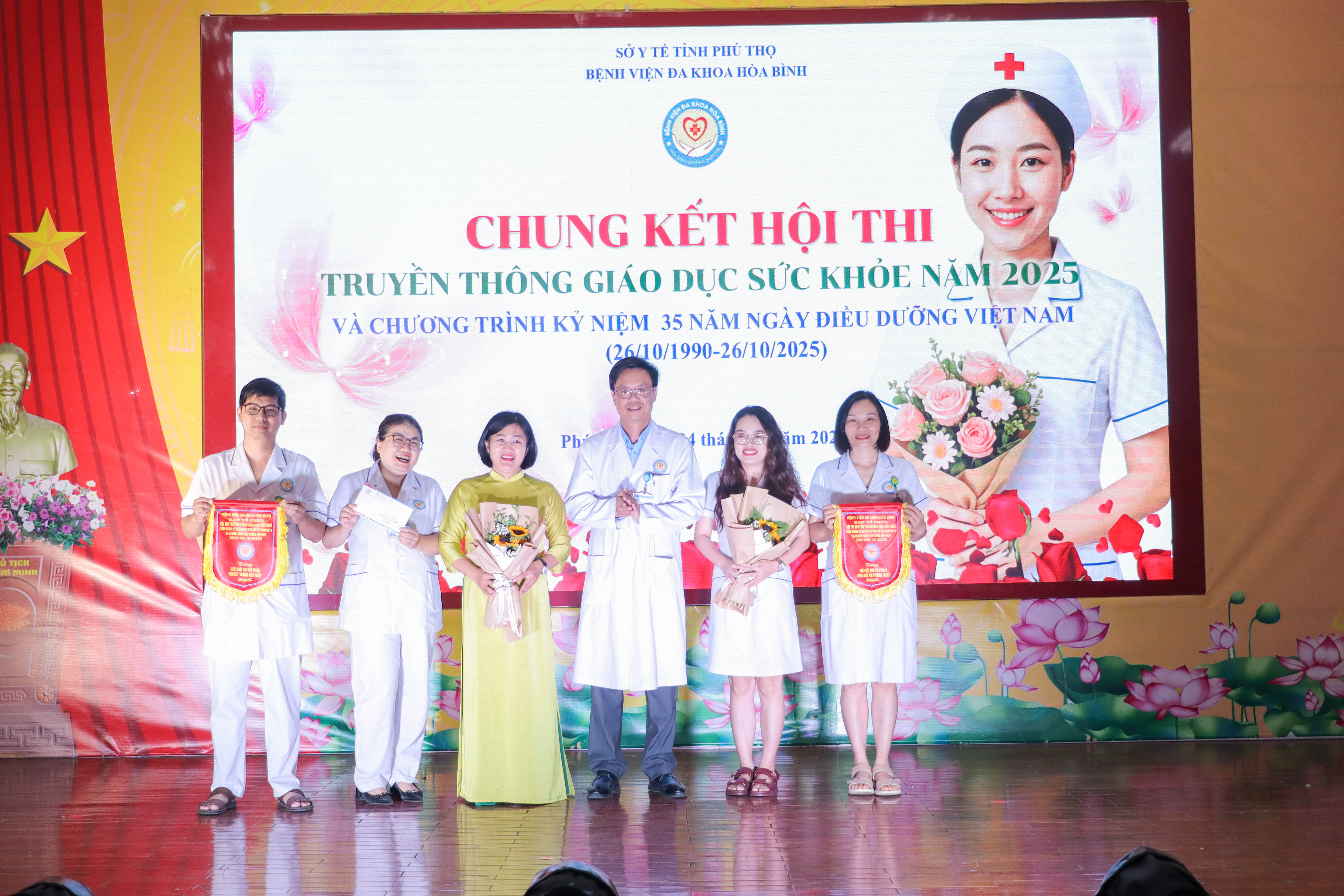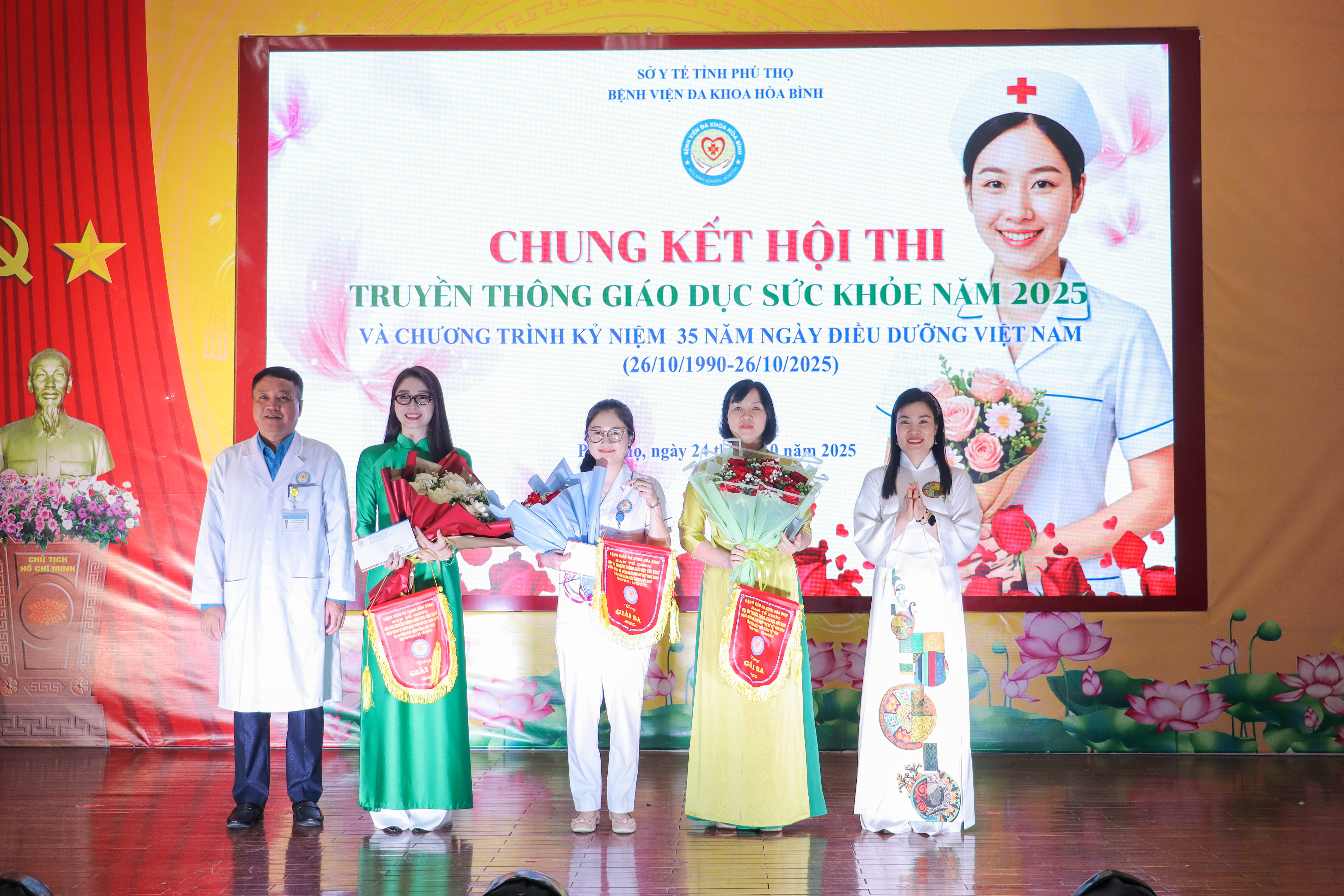 Ngày 25/10/2025, trong không khí hân hoan và tràn đầy tự hào, Bệnh viện Đa khoa Hòa Bình đã long trọng tổ chức Lễ kỷ niệm 35 năm Ngày Điều dưỡng Việt Nam (26/10/1990 – 26/10/2025), kết hợp với Chung kết Hội thi Truyền thông Giáo dục Sức khỏe năm 2025. Tham dự buổi lễ có TS.BS Nguyễn Hoàng Diệu – Giám đốc Bệnh viện, cùng các đồng chí trong Đảng ủy, Ban Giám đốc, Ban Chấp hành Hội Điều dưỡng tỉnh Hòa Bình, Công đoàn cơ sở Bệnh viện, cùng đông đảo điều dưỡng, hộ sinh và kỹ thuật viên y học đang công tác tại các khoa, phòng trong toàn viện.