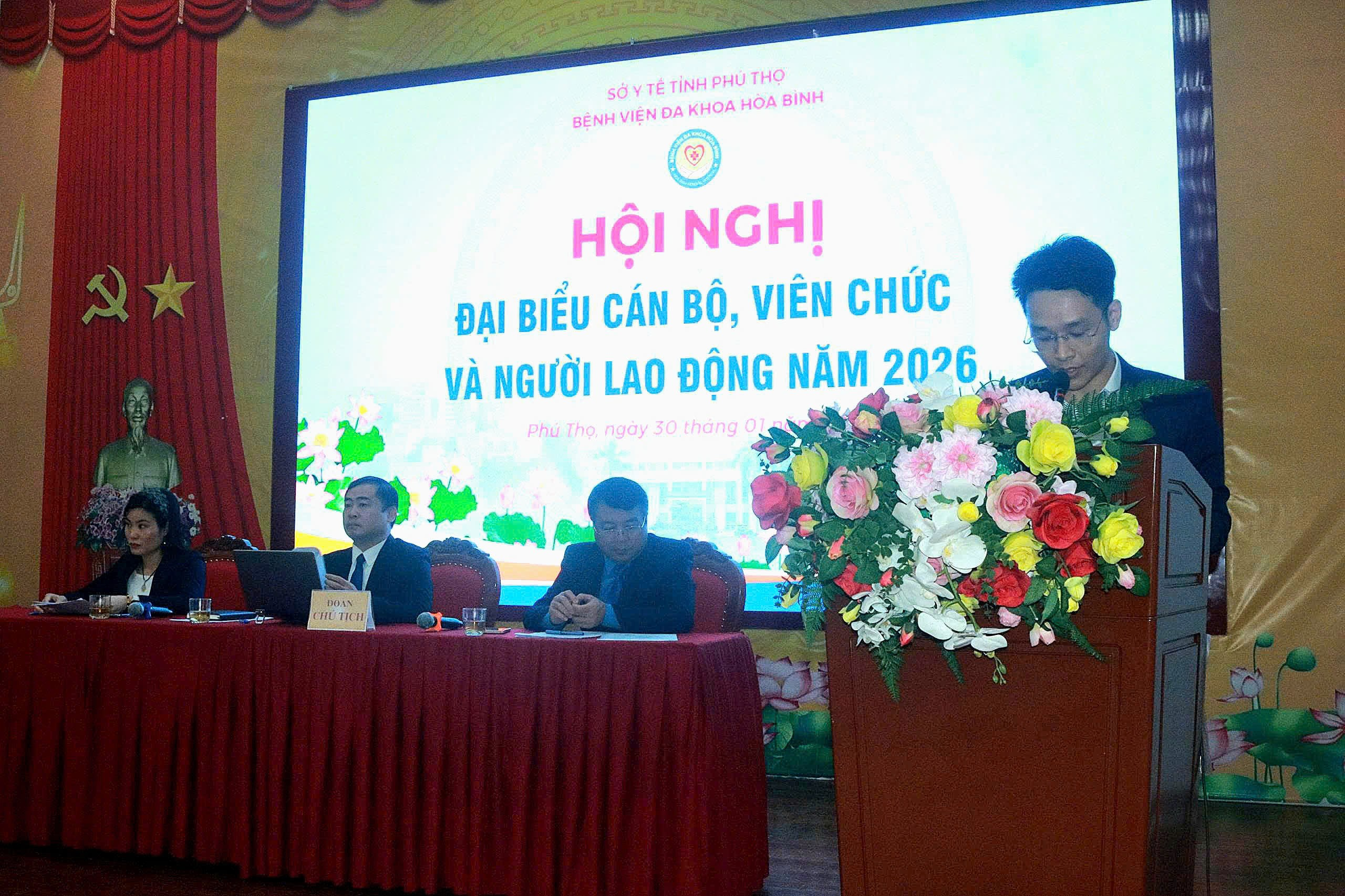 Sáng 30/01, Bệnh viện Đa khoa Hòa Bình long trọng tổ chức Hội nghị Đại biểu cán bộ, viên chức, người lao động năm 2026.