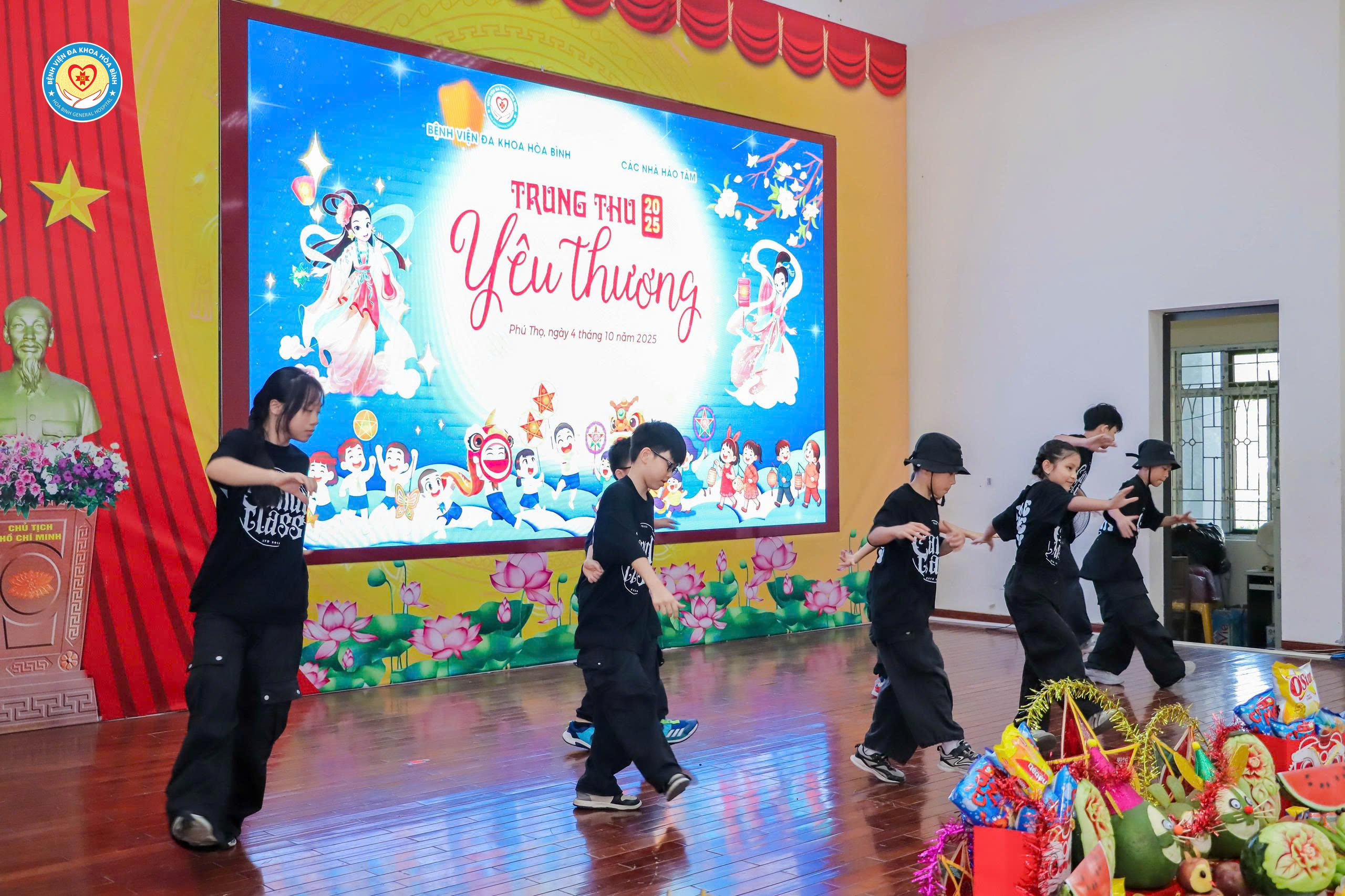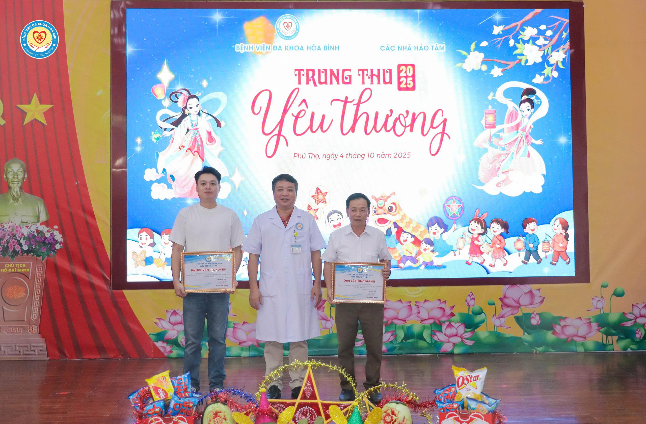 Ngày 4/10 (tức 13/8 âm lịch), Bệnh viện Đa khoa Hòa Bình phối hợp với các cá nhân, tổ chức thiện nguyện tổ chức chương trình Tết Trung thu 2025 cho các bệnh nhi đang điều trị nội trú tại Bệnh viện. Tham dự chương trình có BS.CKII Nguyễn Quốc Phương, Chủ tịch Công đoàn cơ sở, Phó Giám đốc; đại diện đoàn Thanh niên Bệnh viện, Phòng Công tác xã hội và các cá nhân, tổ chức thiện nguyện. Đặc biệt, chương trình có sự tham dự của rất đông bệnh nhi và người nhà trong toàn bệnh viện.