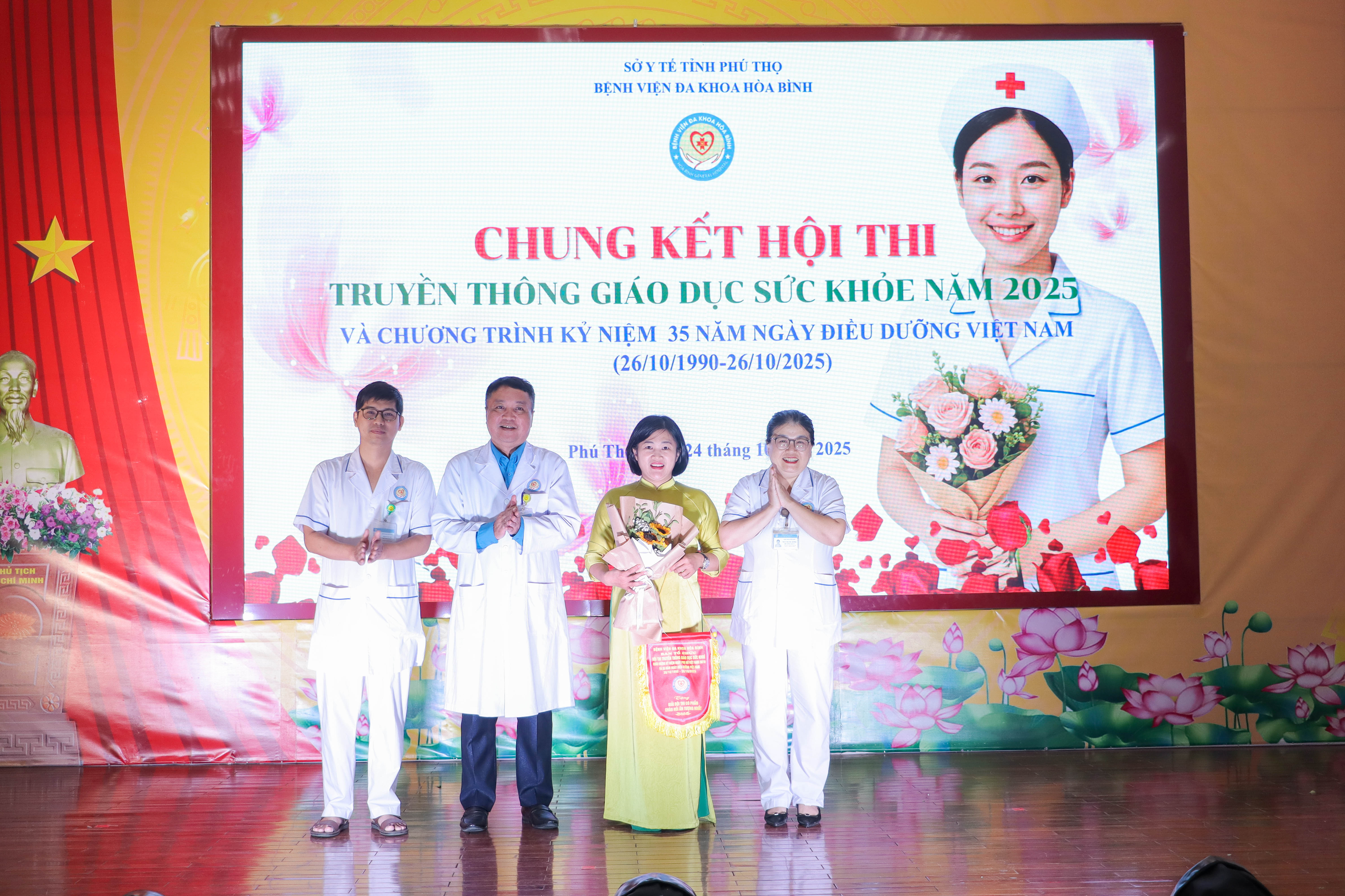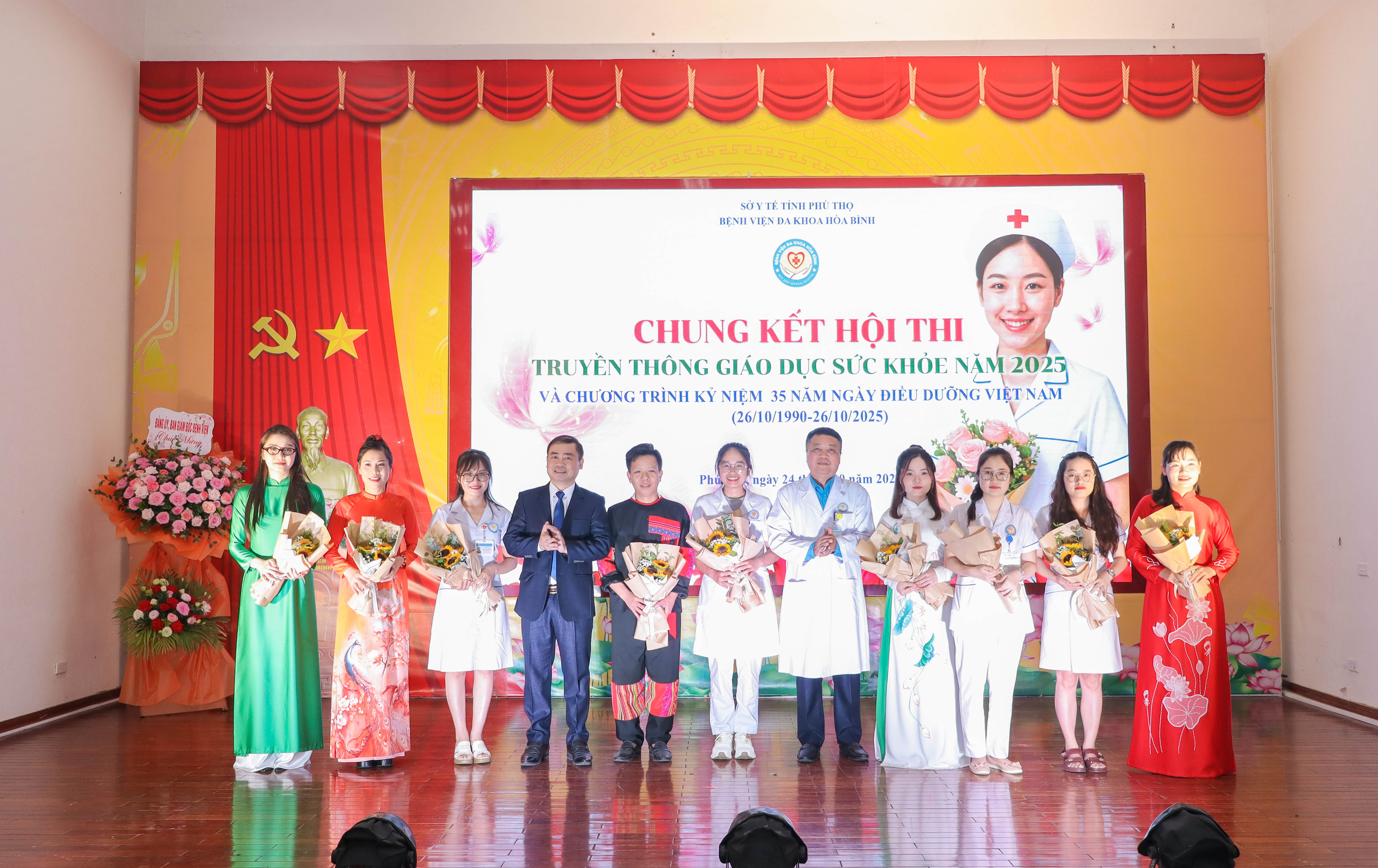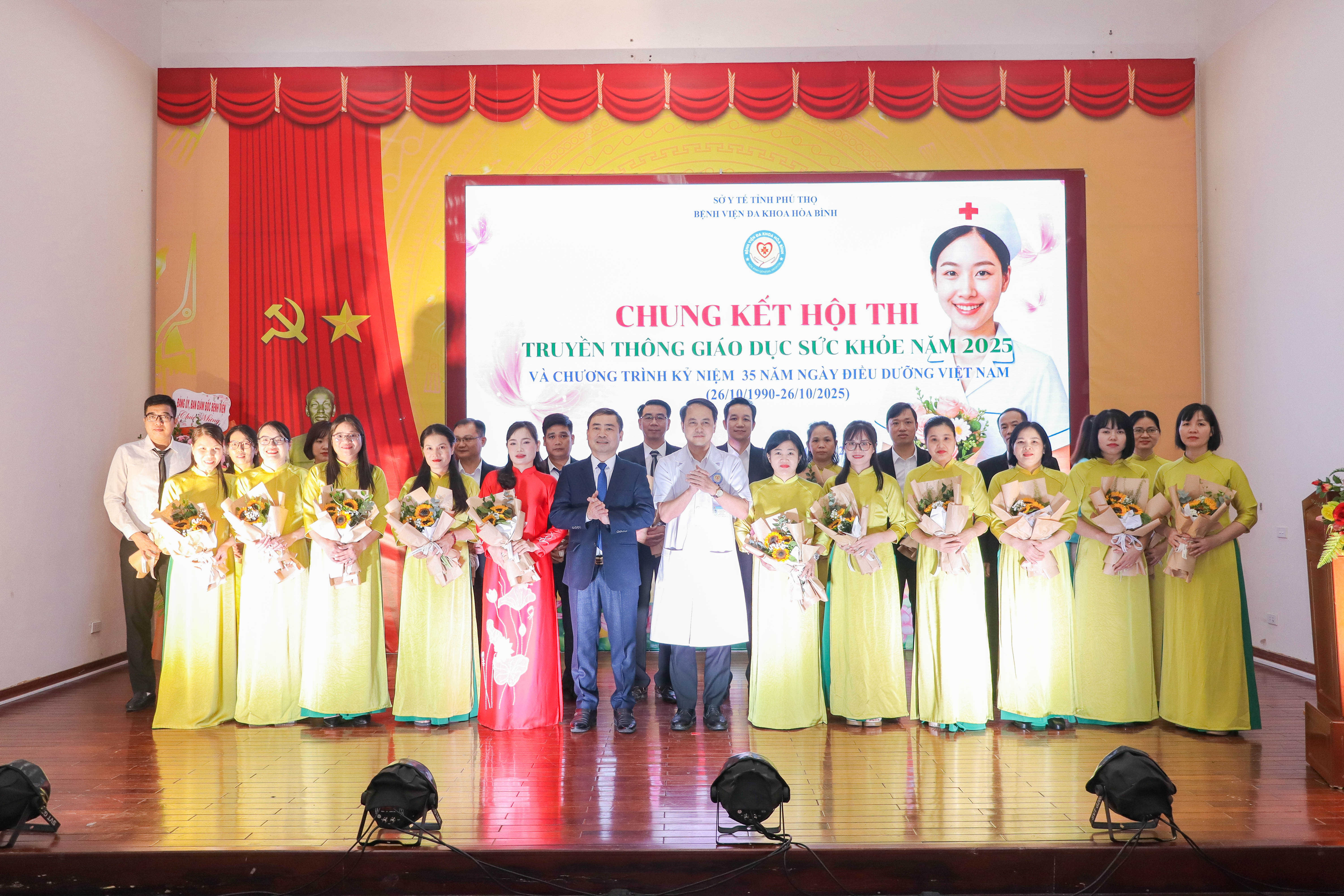 Ngày 25/10/2025, trong không khí hân hoan và tràn đầy tự hào, Bệnh viện Đa khoa Hòa Bình đã long trọng tổ chức Lễ kỷ niệm 35 năm Ngày Điều dưỡng Việt Nam (26/10/1990 – 26/10/2025), kết hợp với Chung kết Hội thi Truyền thông Giáo dục Sức khỏe năm 2025. Tham dự buổi lễ có TS.BS Nguyễn Hoàng Diệu – Giám đốc Bệnh viện, cùng các đồng chí trong Đảng ủy, Ban Giám đốc, Ban Chấp hành Hội Điều dưỡng tỉnh Hòa Bình, Công đoàn cơ sở Bệnh viện, cùng đông đảo điều dưỡng, hộ sinh và kỹ thuật viên y học đang công tác tại các khoa, phòng trong toàn viện.