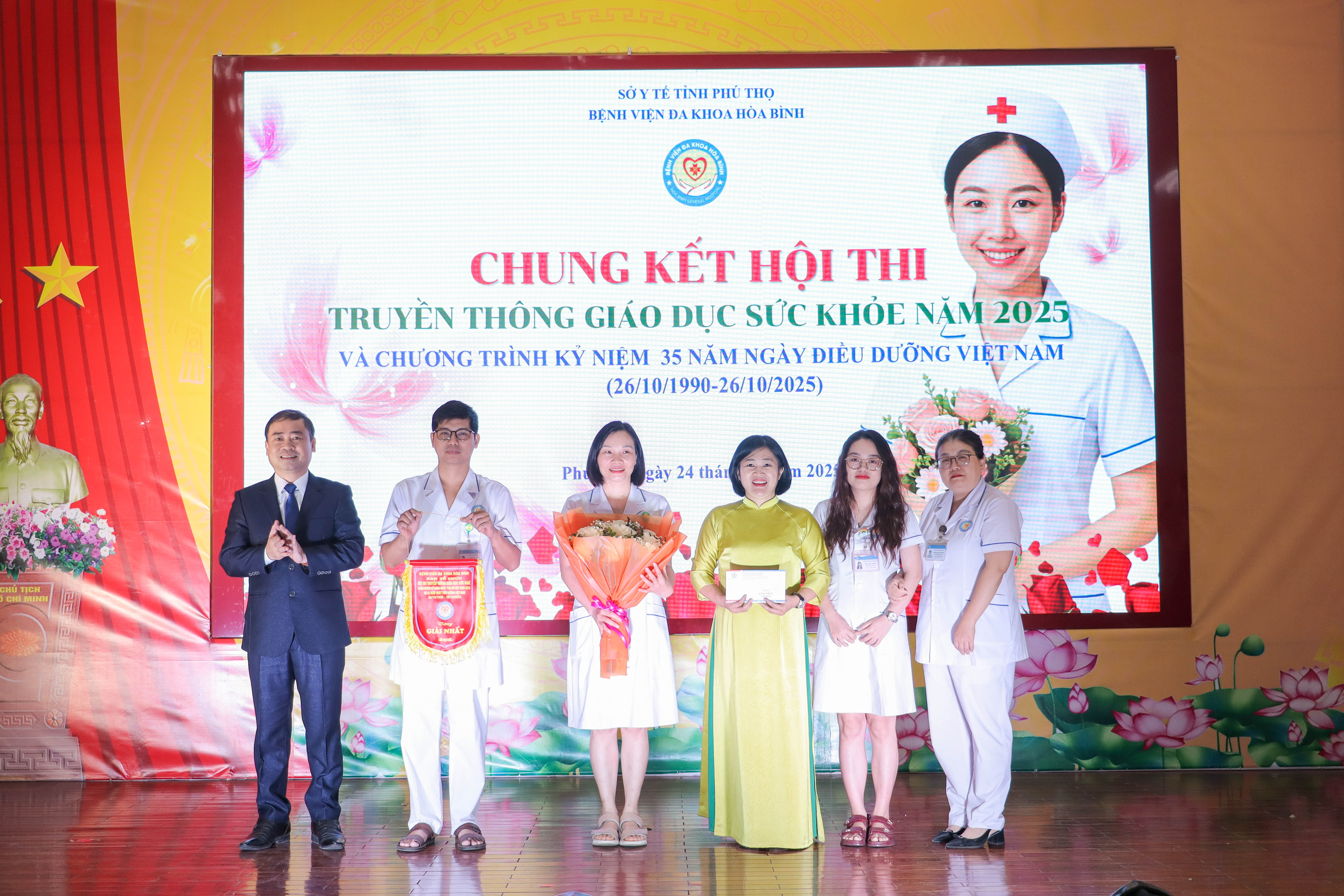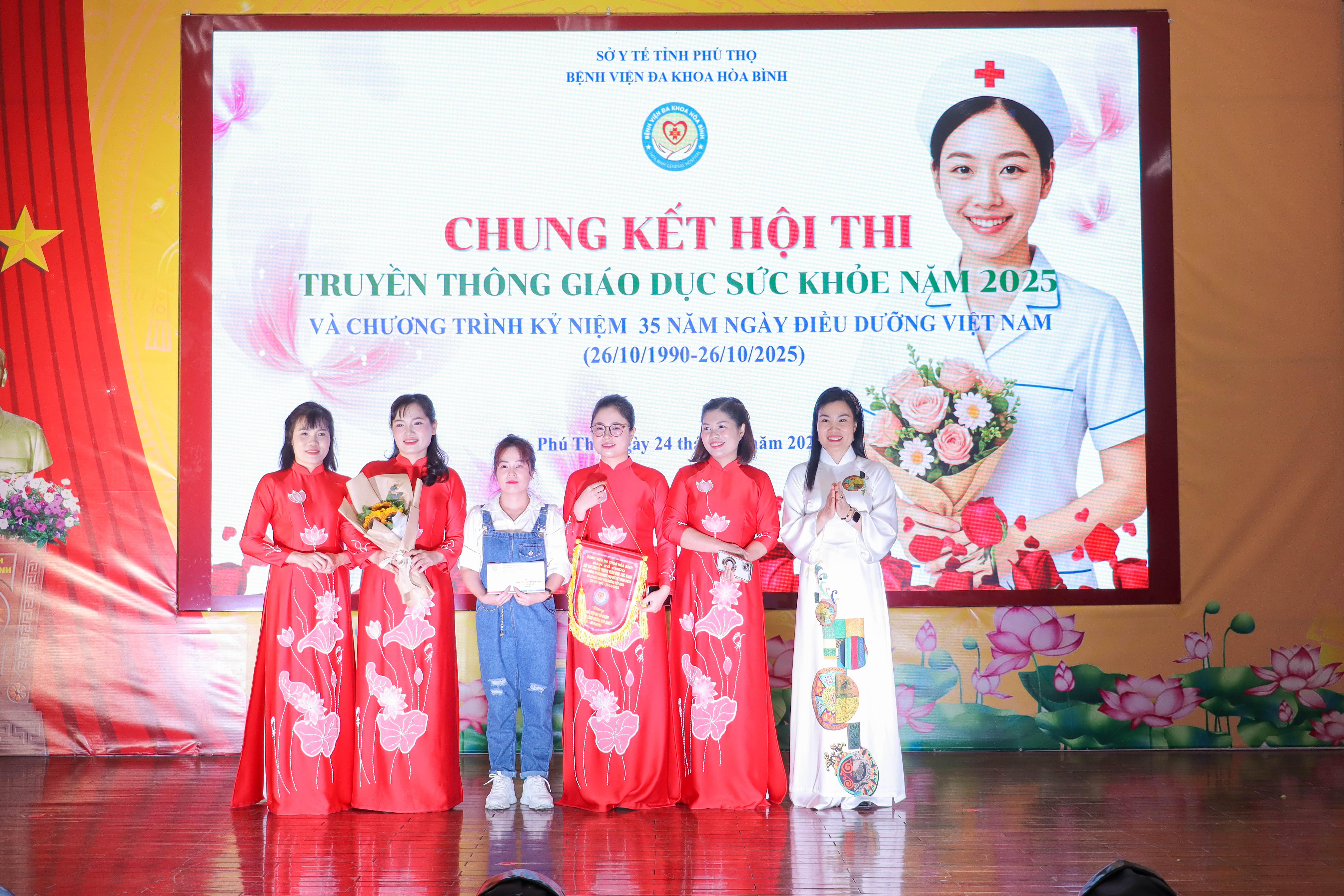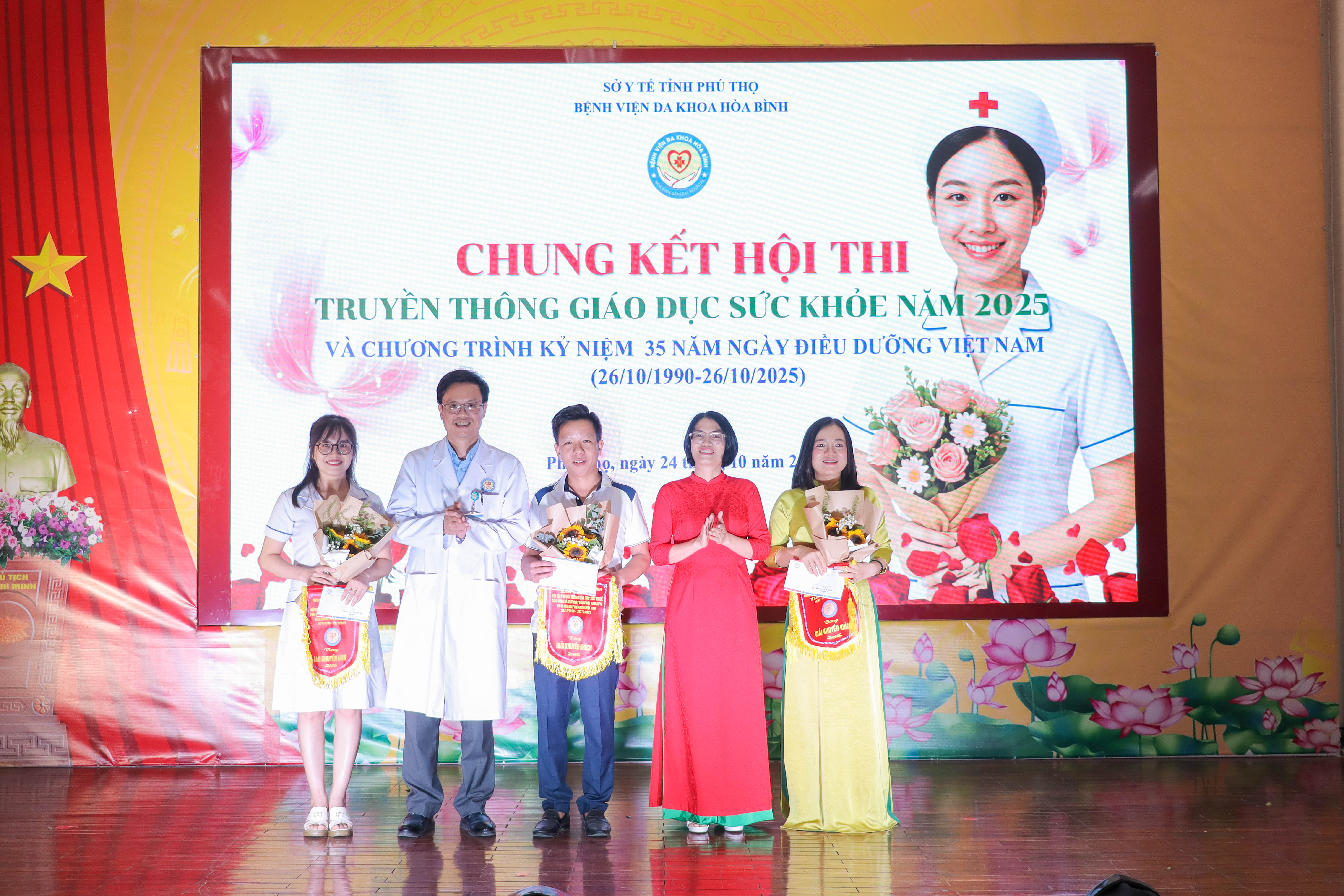 Ngày 25/10/2025, trong không khí hân hoan và tràn đầy tự hào, Bệnh viện Đa khoa Hòa Bình đã long trọng tổ chức Lễ kỷ niệm 35 năm Ngày Điều dưỡng Việt Nam (26/10/1990 – 26/10/2025), kết hợp với Chung kết Hội thi Truyền thông Giáo dục Sức khỏe năm 2025. Tham dự buổi lễ có TS.BS Nguyễn Hoàng Diệu – Giám đốc Bệnh viện, cùng các đồng chí trong Đảng ủy, Ban Giám đốc, Ban Chấp hành Hội Điều dưỡng tỉnh Hòa Bình, Công đoàn cơ sở Bệnh viện, cùng đông đảo điều dưỡng, hộ sinh và kỹ thuật viên y học đang công tác tại các khoa, phòng trong toàn viện.