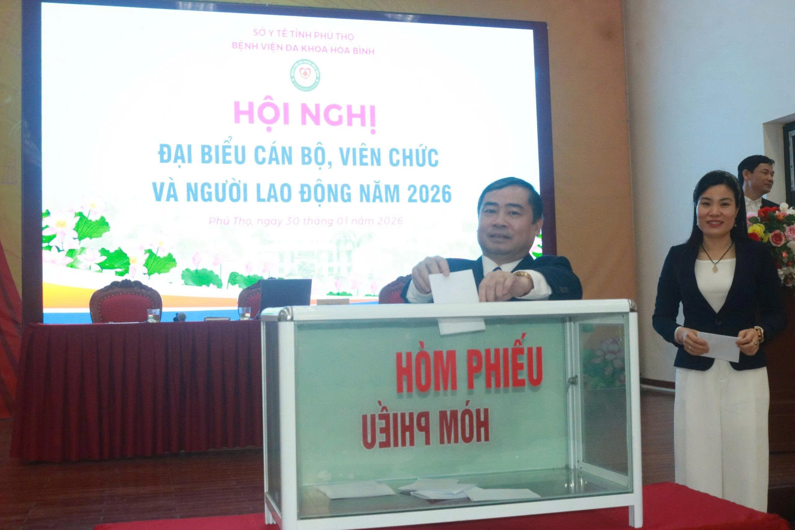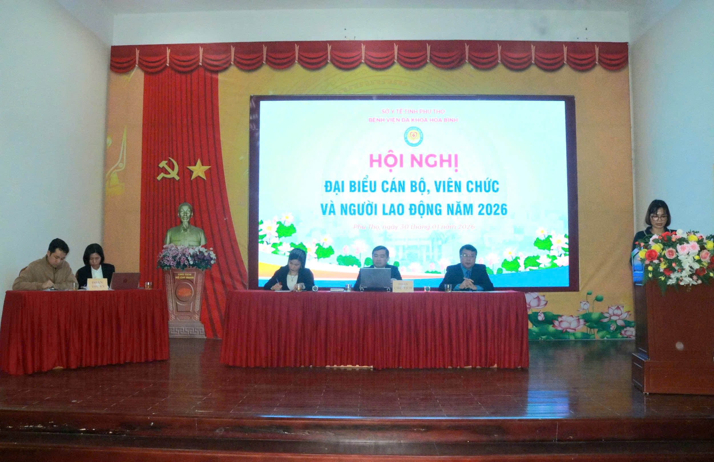 Sáng 30/01, Bệnh viện Đa khoa Hòa Bình long trọng tổ chức Hội nghị Đại biểu cán bộ, viên chức, người lao động năm 2026.