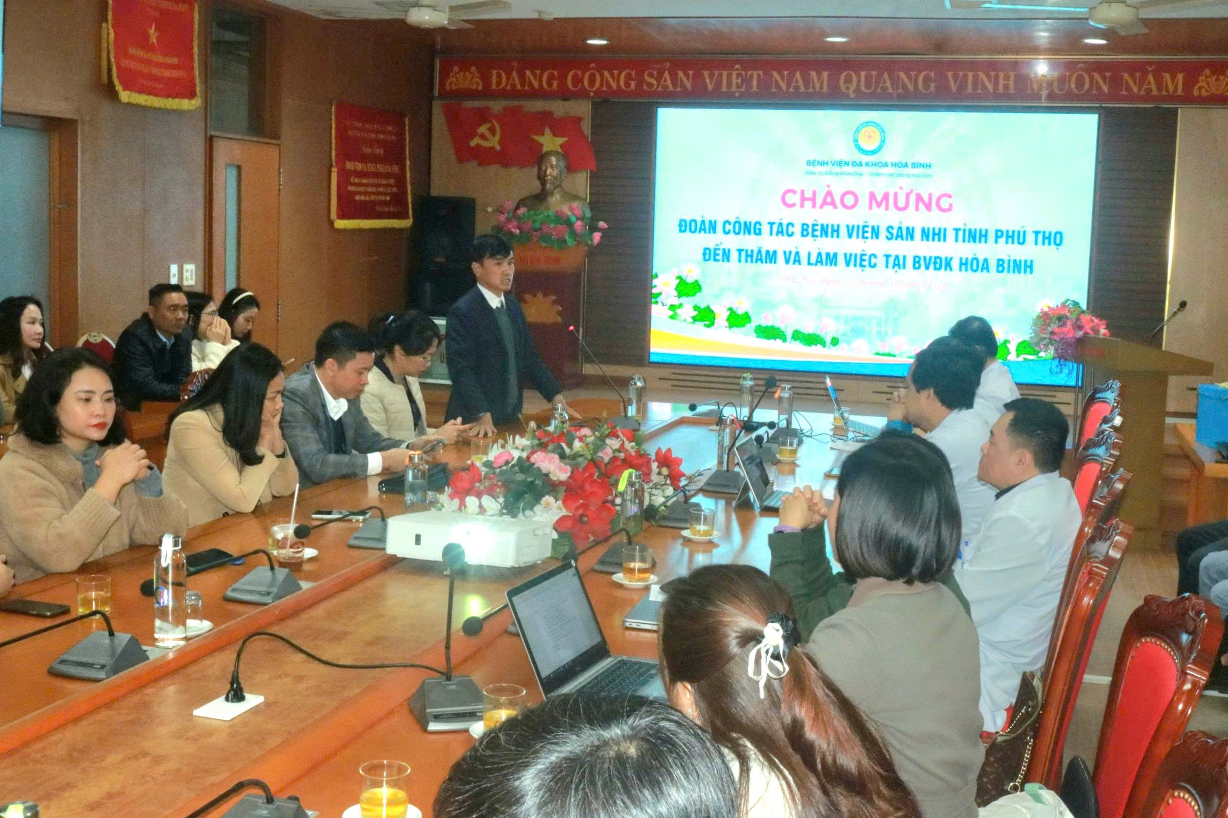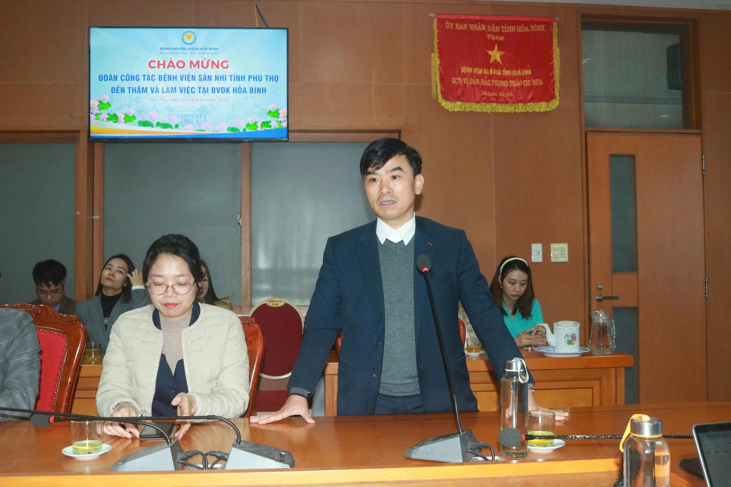 Trong không khí cởi mở, đoàn kết và hợp tác phát triển, vừa qua, Bệnh viện Sản Nhi tỉnh Phú Thọ đã đến thăm và làm việc tại Bệnh viện Đa khoa Hòa Bình. Chuyến công tác là dịp để hai đơn vị giao lưu, học tập, chia sẻ kinh nghiệm trong công tác chuyên môn cũng như quản trị, điều hành bệnh viện.