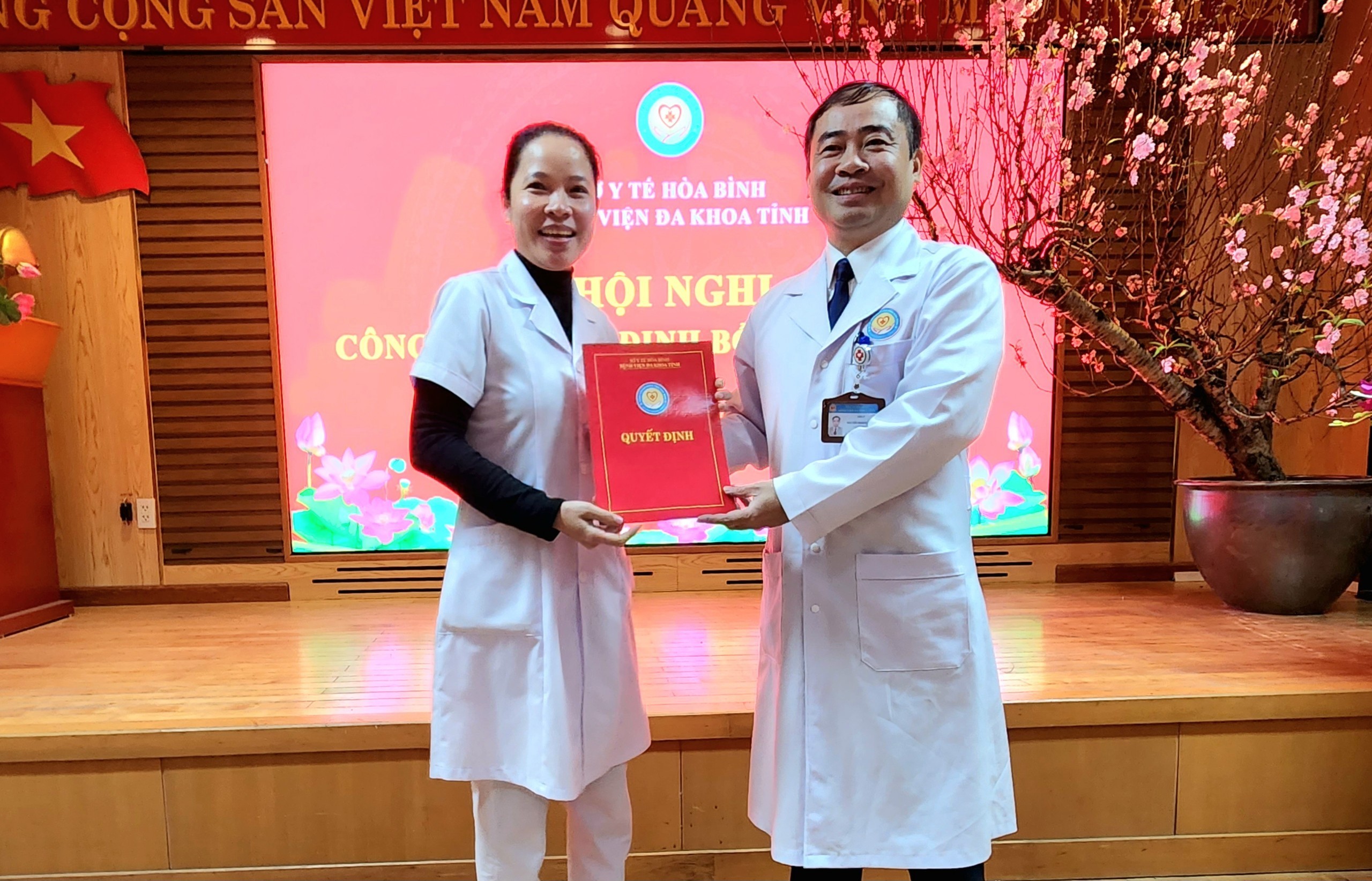 Ngày 31/01/2024, Bệnh viện Đa khoa tỉnh Hoà Bình long trọng tổ chức Hội nghị công bố các Quyết định bổ nhiệm, bổ nhiệm lại tháng 01 năm 2024. TS.BS Nguyễn Hoàng Diệu, Giám đốc Bệnh viện dự và chủ trì Hội nghị.