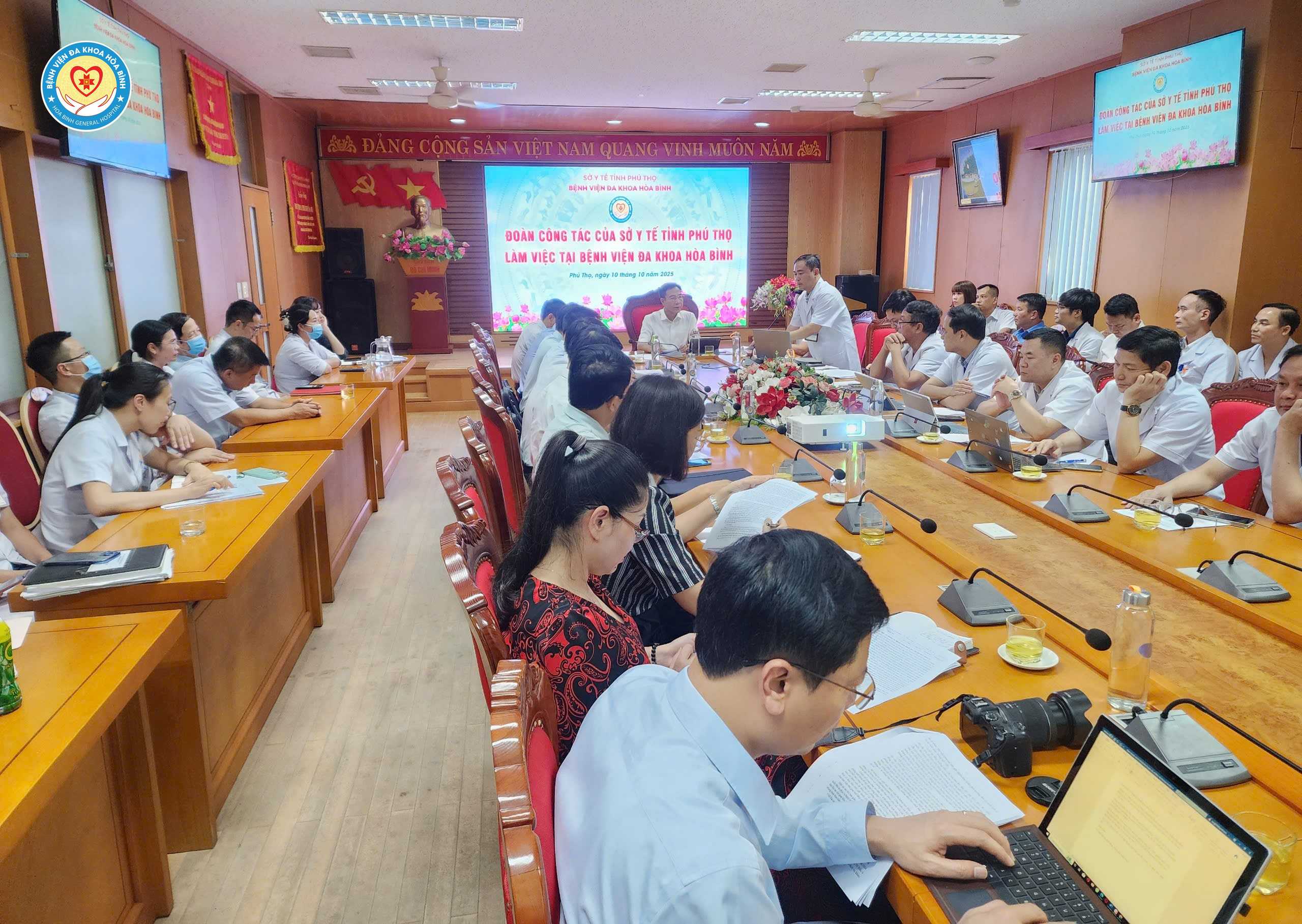 Ngày 10/10/2025, Đoàn công tác Sở Y tế tỉnh Phú Thọ do TS.BS Lê Hồng Trung – Tỉnh ủy viên, Giám đốc Sở Y tế làm Trưởng đoàn đã có buổi làm việc với Bệnh viện Đa khoa Hòa Bình về tình hình thực hiện nhiệm vụ 9 tháng đầu năm 2025, phương hướng, nhiệm vụ 3 tháng cuối năm 2025 và kế hoạch phát triển Bệnh viện giai đoạn 2026–2030. Tiếp và làm việc với Đoàn công tác có Ban Giám đốc Bệnh viện cùng đại diện lãnh đạo các khoa, phòng, trung tâm trực thuộc.