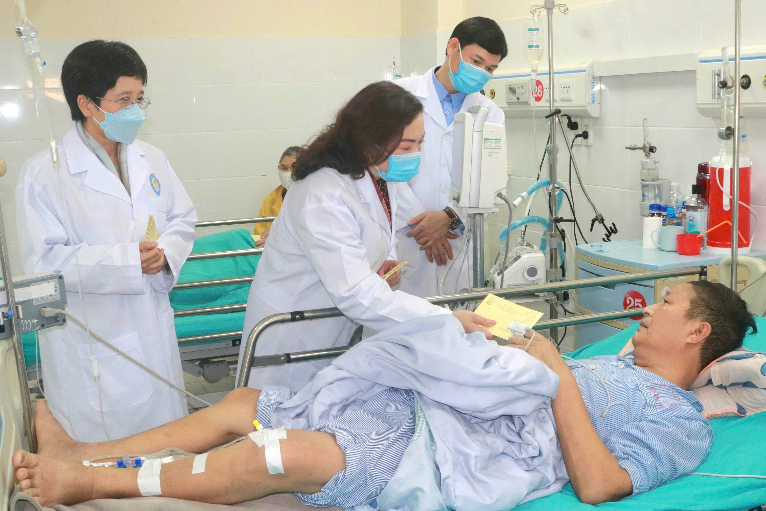 Đồng chí Nguyễn Thị Phú Hà, Phó chủ nhiệm Ủy ban Kinh tế và Tài chính của Quốc hội, ĐBQH khóa XV tỉnh Phú Thọ cùng lãnh đạo Bệnh viện và khoa Hồi sức tích cực 1 thăm hỏi bệnh nhân