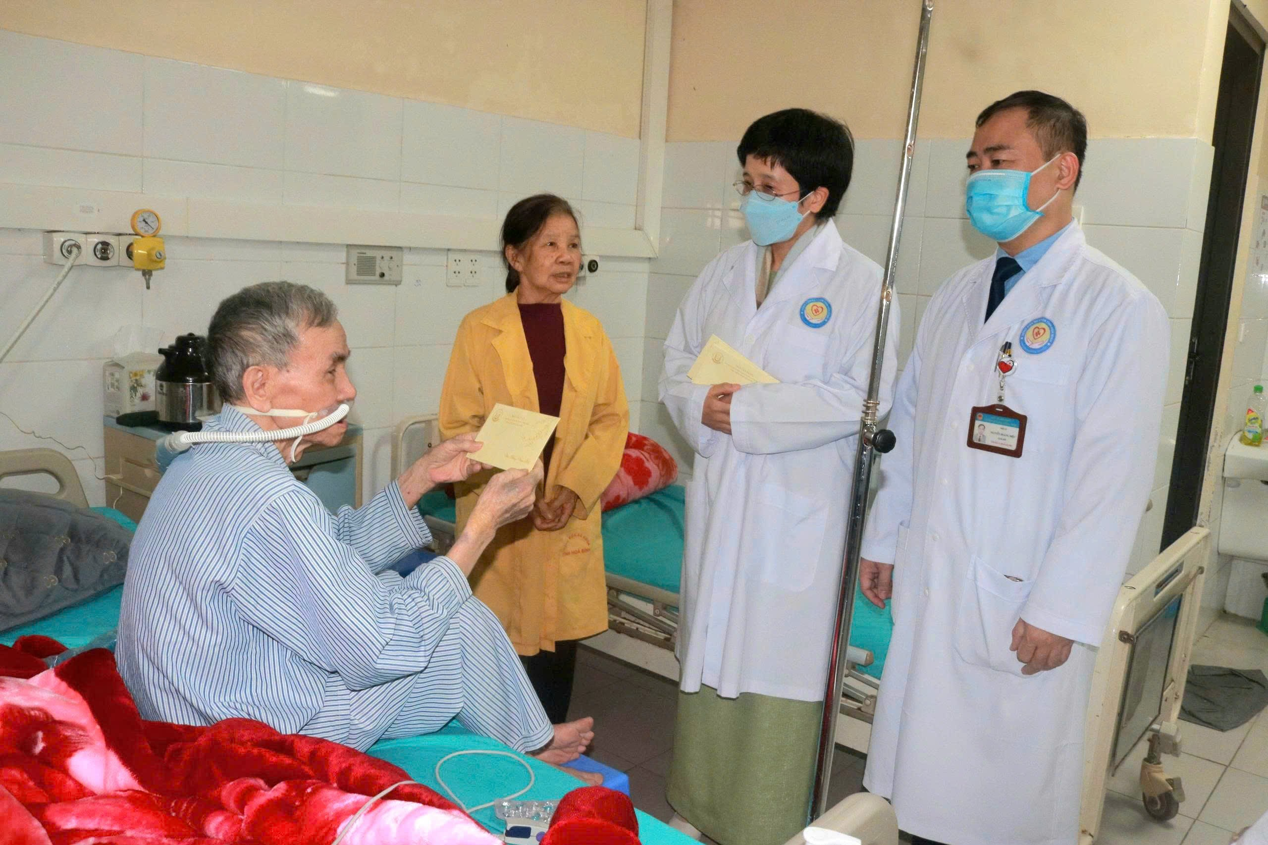 Tiếp đó, đoàn đến thăm hỏi và chúc tết các bệnh nhân nặng tại khoa Hồi sức tích cực 1. Hiện tại, khoa có 26 bệnh nhân điều trị nội trú. Đây đều là bệnh nhân cấp 1, bệnh nhân chăm sóc toàn diện, thời gian điều trị lâu dài, bệnh nặng, hiểm nghèo. Đa phần các bệnh nhân phải điều trị xuyên tết. Có những bệnh nhân có thời gian điều trị nhiều hơn một mùa xuân. Thấu hiểu sự thiệt thòi của các bệnh nhân, tại mỗi giường bệnh, các đồng chí đoàn đại biểu Quốc hội đều ân cần thăm hỏi và gửi lời động viên sâu sắc đến người bệnh, người nhà người bệnh, chúc các bệnh nhân luôn kiên cường, cố gắng và lạc quan điều trị bệnh để sớm trở về với gia đình.