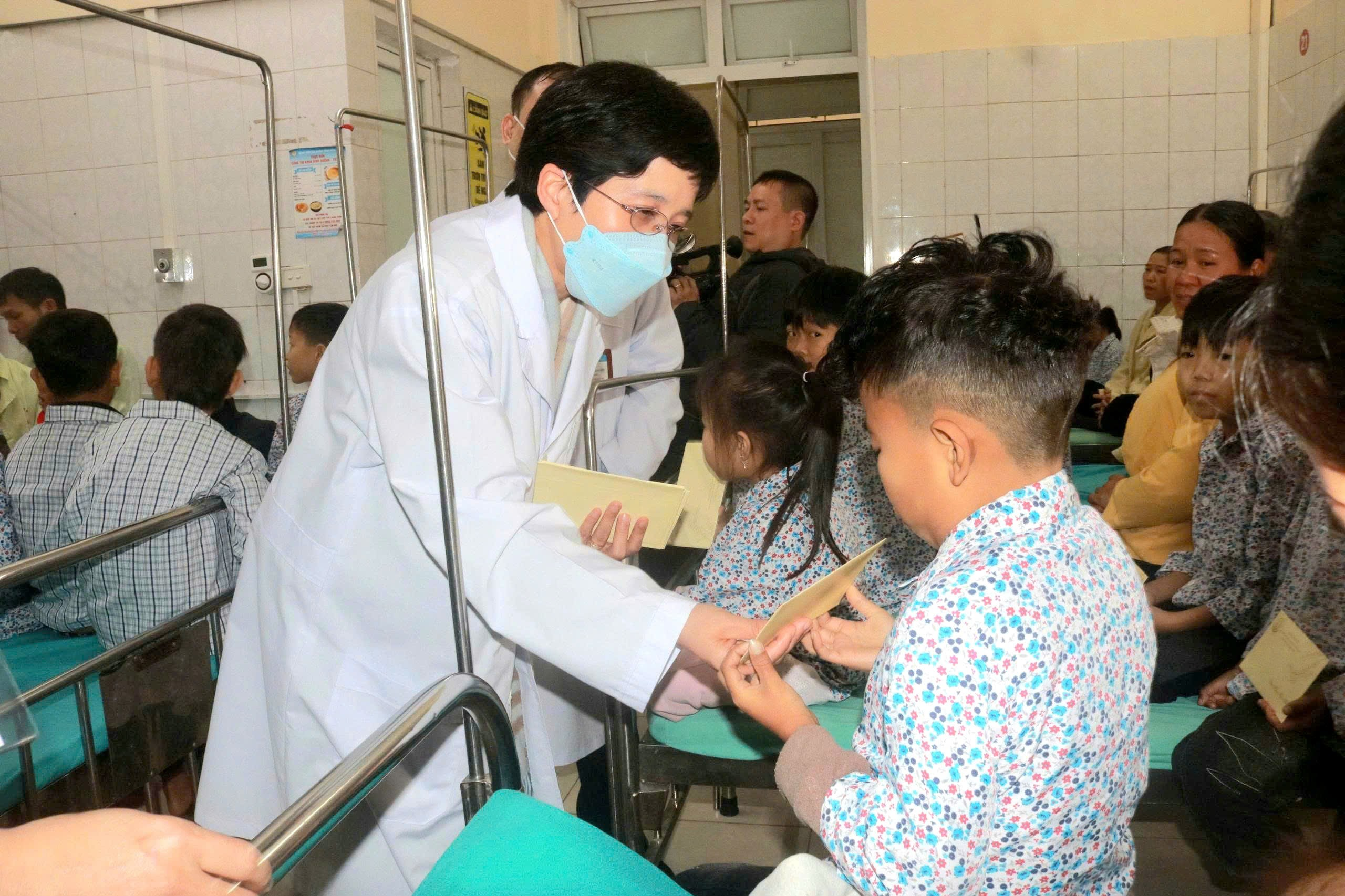 Nhân dịp này, đoàn cũng đến thăm và tặng quà tết các bệnh nhi khoa Nhi, đặc biệt là các bệnh nhi thalassemia đang truyền máu định kỳ. Các đồng chí đoàn Đại biểu Quốc hội gửi lời chúc tới các bệnh nhi luôn mạnh mẽ và chăm ngoan, học giỏi.