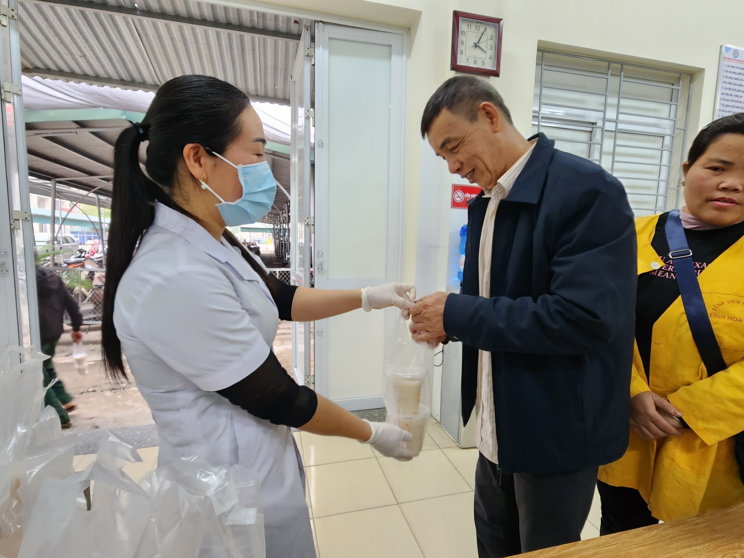 Rất đông bệnh nhân và người nhà đến nhận cháo
