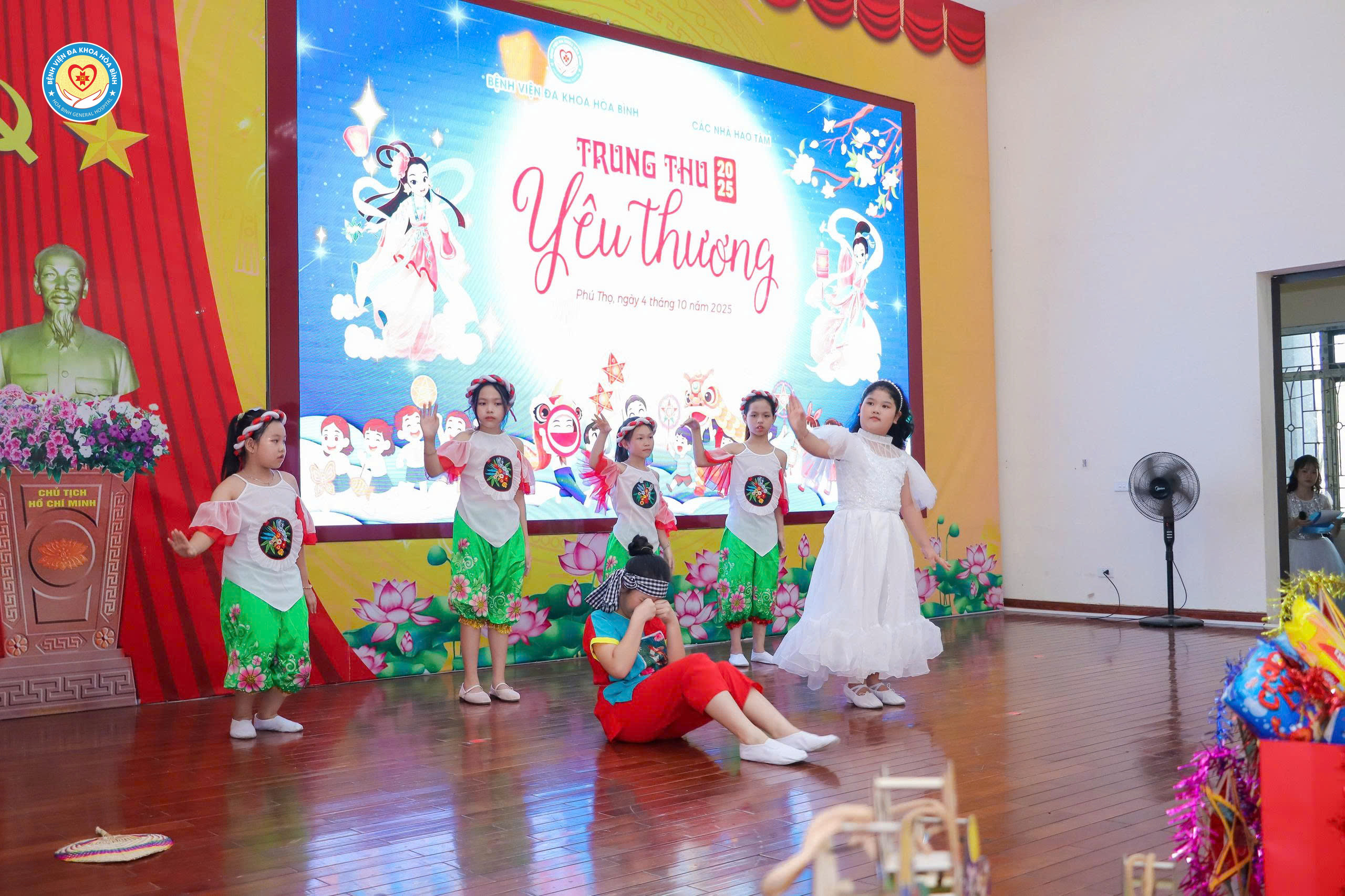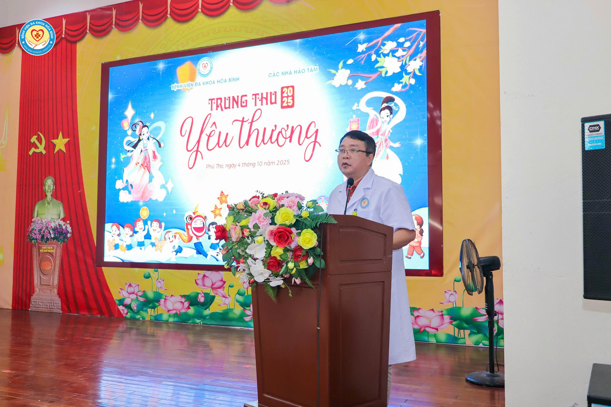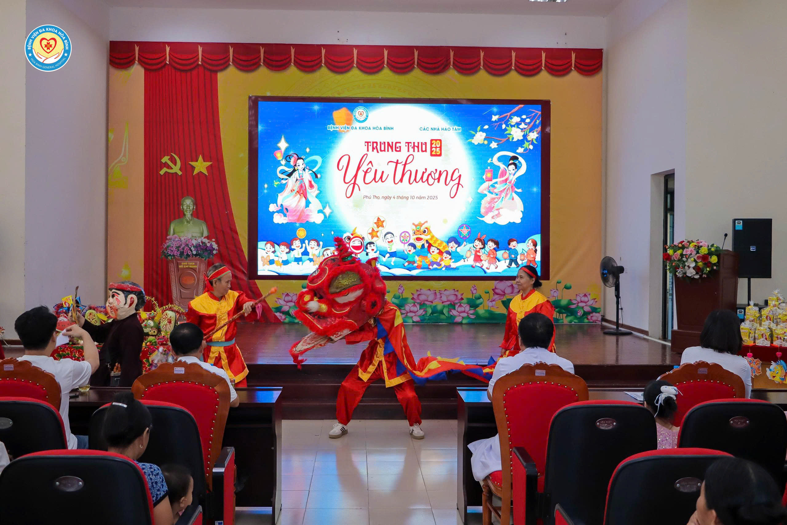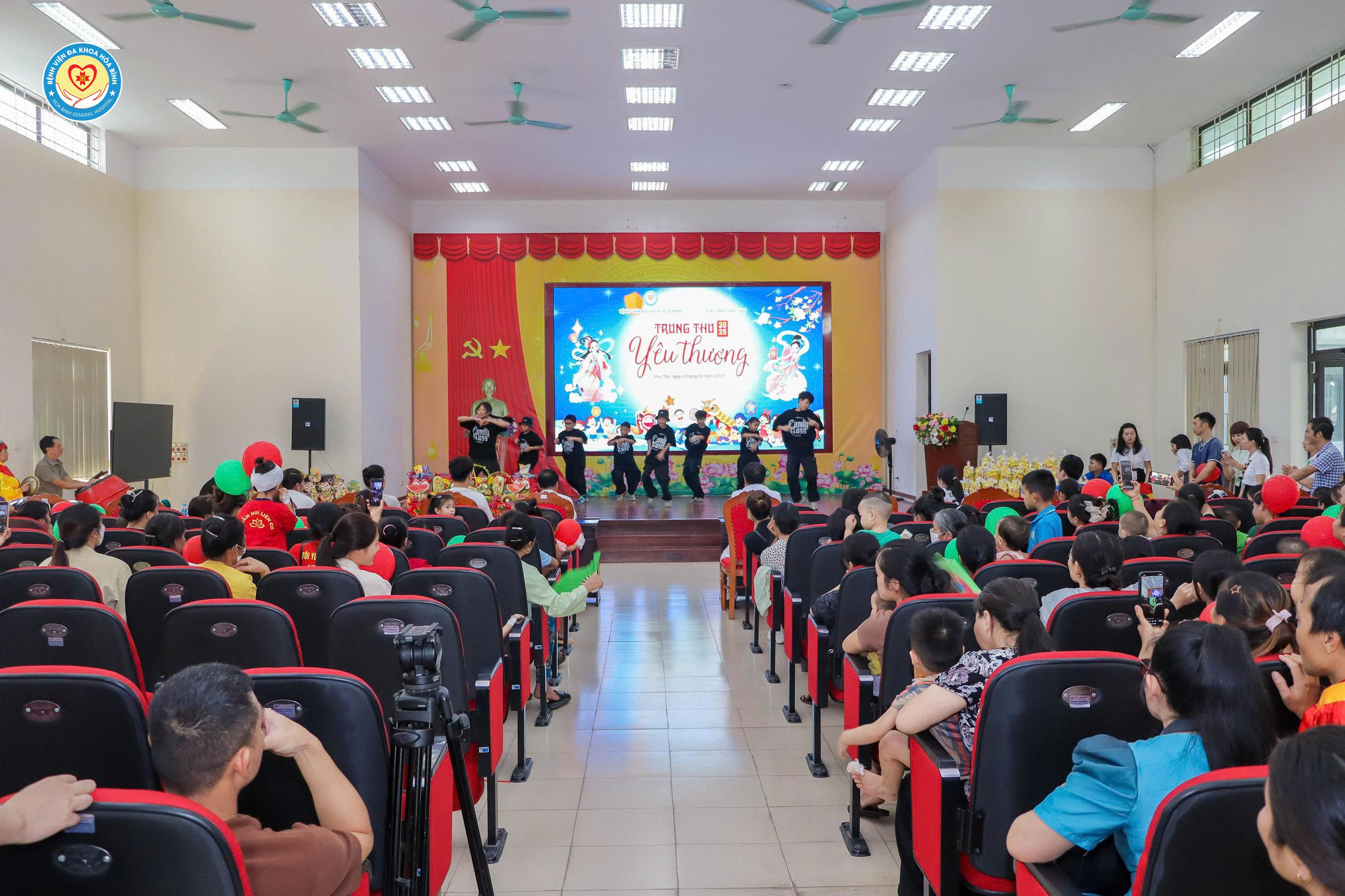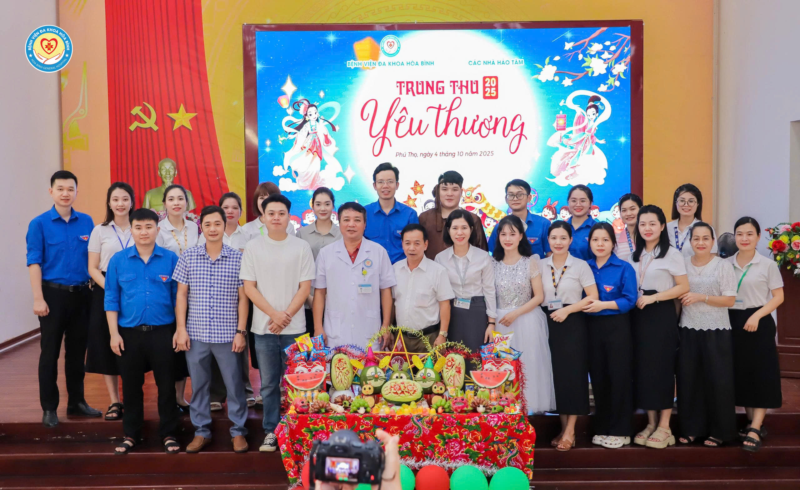 Ngày 4/10 (tức 13/8 âm lịch), Bệnh viện Đa khoa Hòa Bình phối hợp với các cá nhân, tổ chức thiện nguyện tổ chức chương trình Tết Trung thu 2025 cho các bệnh nhi đang điều trị nội trú tại Bệnh viện. Tham dự chương trình có BS.CKII Nguyễn Quốc Phương, Chủ tịch Công đoàn cơ sở, Phó Giám đốc; đại diện đoàn Thanh niên Bệnh viện, Phòng Công tác xã hội và các cá nhân, tổ chức thiện nguyện. Đặc biệt, chương trình có sự tham dự của rất đông bệnh nhi và người nhà trong toàn bệnh viện.