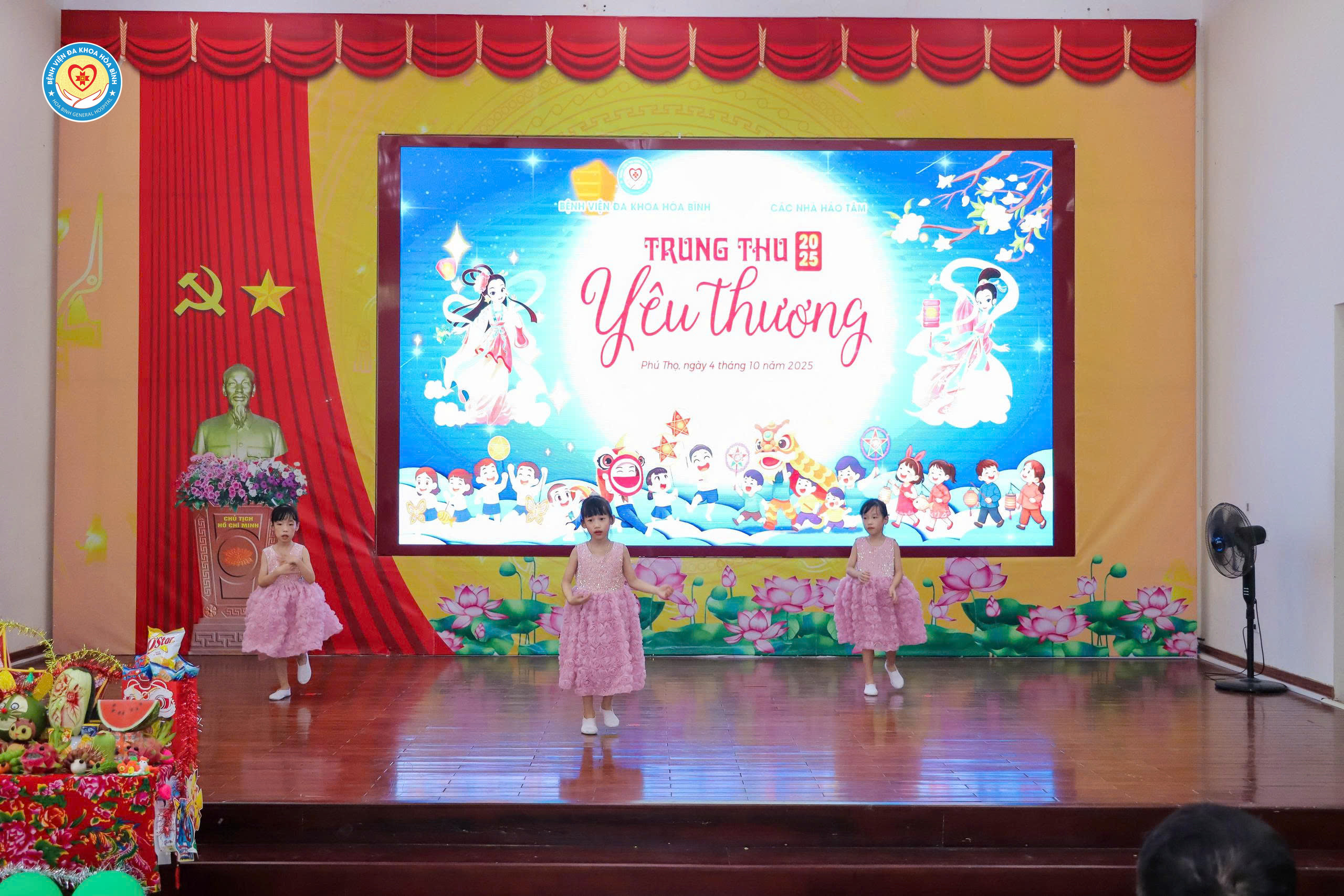 Bệnh viện Đa khoa Hòa Bình xin trân trọng cảm ơn các đơn vị tài trợ đã đồng hành cùng chương trình “Tết Trung thu cho các bệnh nhi” năm 2025. Sự chung tay của Bà Nguyễn Thị Tuyên, phường Hoà Bình, tỉnh Phú Thọ, Ông Lê Hồng Mạnh, Giám đốc Hợp tác xã tình thương Mỹ Đức, Ông Phạm Vĩnh Thành, Công ty thuỷ điện Hoà Bình đã góp phần mang đến cho các em nhỏ đang điều trị tại bệnh viện một mùa Trung thu ấm áp, tràn đầy niềm vui và yêu thương.