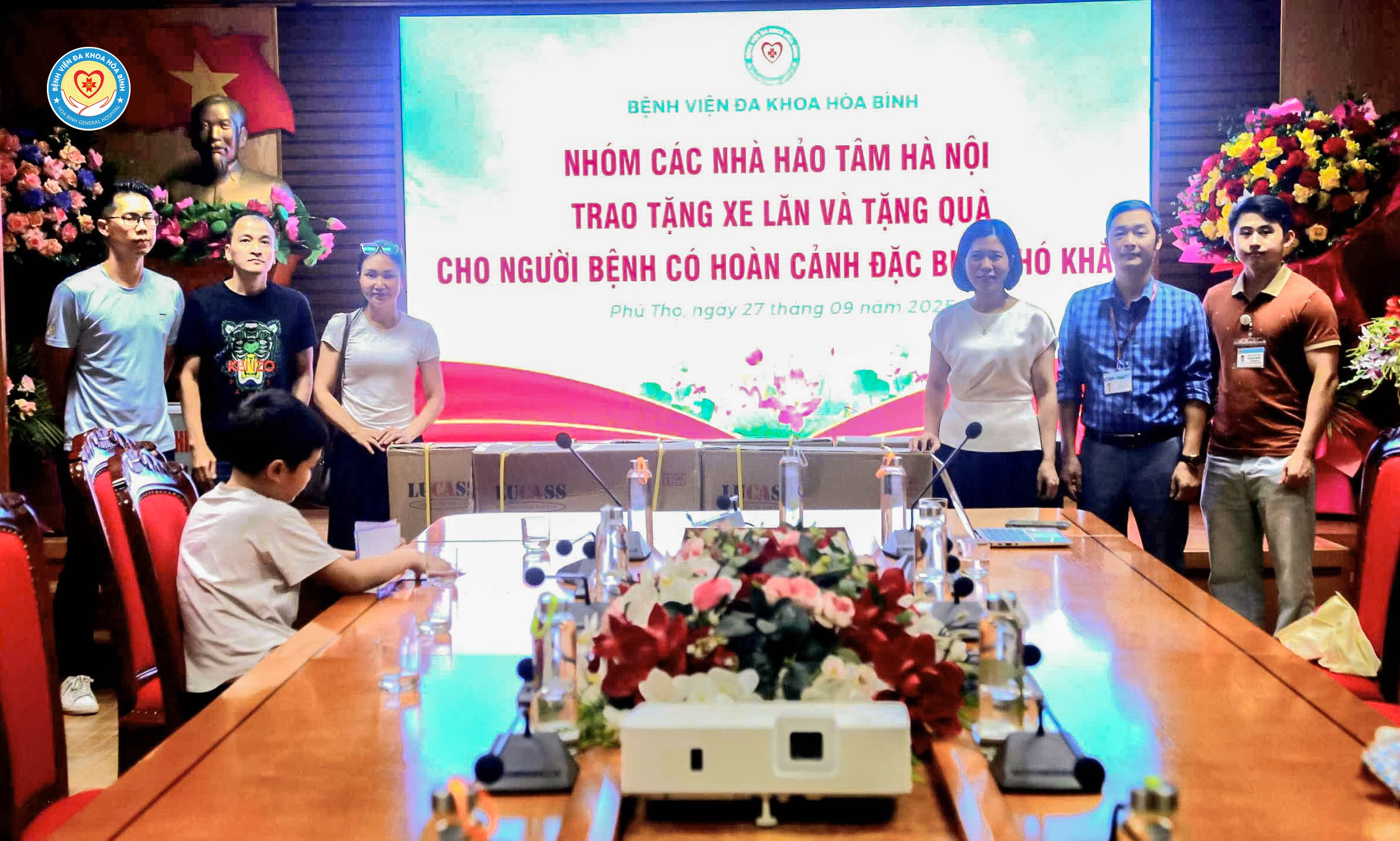 Ngày 27/9, tại Hội trường toà nhà Kỹ thuật cao (B3) Bệnh viện Đa khoa Hoà Bình đã diễn ra chương trình Trao tặng xe lăn và quà cho người bệnh có hoàn cảnh đặc biệt khó khăn đang điều trị tại Bệnh viện. Tham dự chương trình có bà Nguyễn Tuyết Nhung, trưởng phòng Công tác xã hội Bệnh viện và đoàn các nhà hảo tâm Hà Nội do anh Nguyễn Ngọc Quang làm trưởng nhóm cùng các bệnh nhân và người nhà.