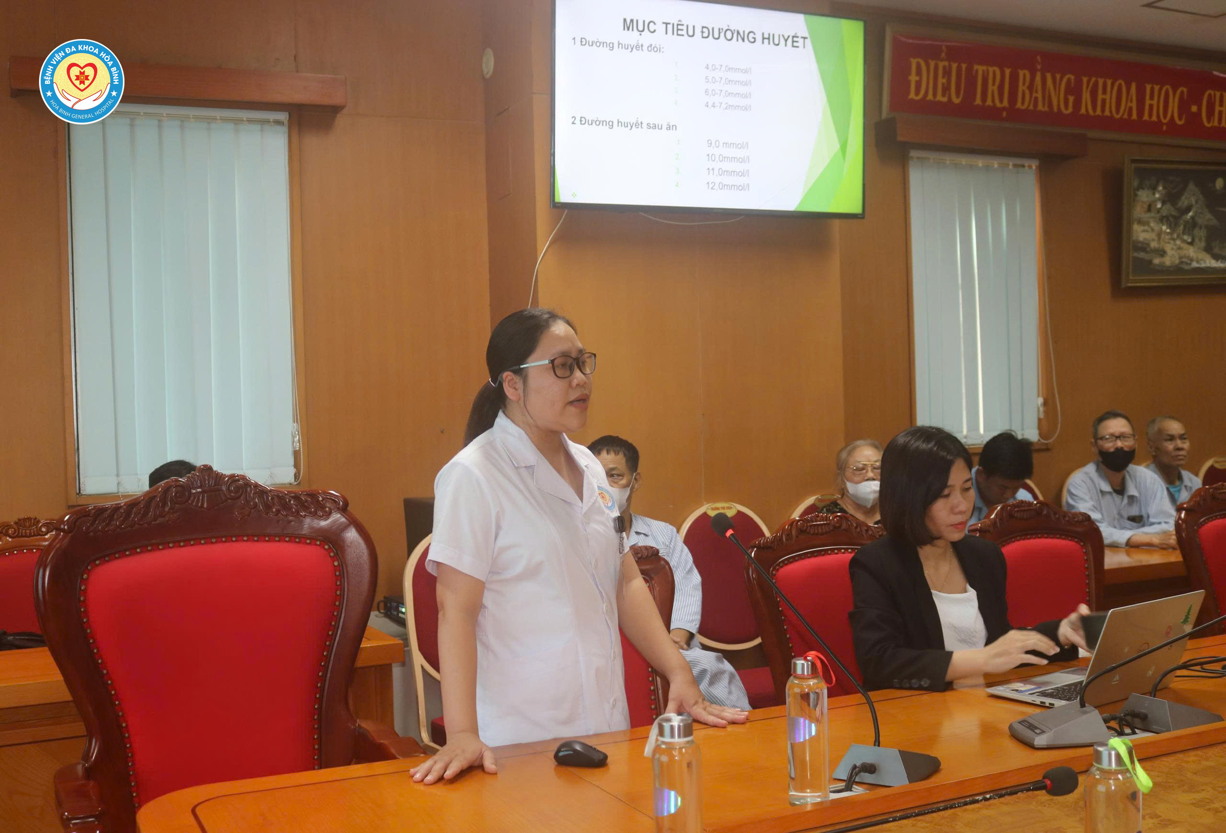 “Đồng hành cùng bệnh nhân đái tháo đường ” là chủ đề được lựa chọn cho buổi truyền thông. Tại chương trình, người bệnh và người nhà người bệnh được cung kiến những kiến thức cơ bản về bệnh đái tháo đường, những chỉ số thường gặp của bệnh đái tháo đường, chế độ dinh dưỡng hợp lý, chế độ vận động khoa học, kiểm tra sức khỏe định kỳ và quản lý biến chứng. Buổi sinh hoạt nhận được sự hưởng ứng nhiệt tình của người bệnh và người nhà, tạo bầu không khí thân tình, gần gũi và giàu giá trị thực tiễn. Bệnh viện Đa khoa Hoà Bình dự kiến duy trì hoạt động giáo dục sức khỏe cho bệnh nhân đái tháo đường định kỳ. Qua đó, hướng tới mục tiêu đồng hành cùng người bệnh trong quản lý và kiểm soát bệnh mạn tính, góp phần nâng cao sức khỏe cộng đồng.